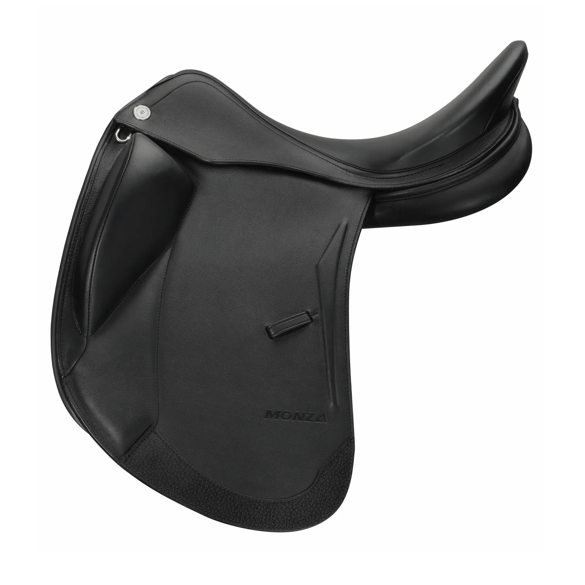 Prestige Monza er en moderne monoflap dressursadel. Sadlen har et dybt og behageligt sæde, som giver en god følelse af tæt kontakt mellem hest og rytter. Sadlen er lavet i højkvalitets italiensk okselæder. Knæstøtterne er placeret højt i forhold til traditionelle monoflap sadler og er skrå , hvilket giver rytteren god støtte og frihed ved knæene. Sadlens paneler er anatomisk formede og ligger godt på hestens ryg.